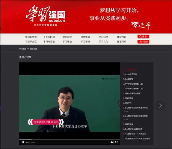 【学习强国】宁维卫教授《走进心理学》课程本月登上学习强国平台