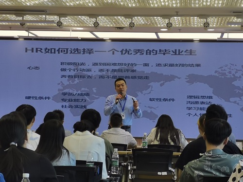 首先,四川万普盛达人力资源有限公司总经理、OPT 望天树学院负责人李松给大家做了一场题为《HR如何选择一个优秀的毕业生》的职业生涯辅导讲座,并介绍了OPT的企业情况和业务发展情况。几位业务主管分别解读了医疗、互联网、智能制造等热门行业的行业前景、不同企业用人理念、岗位类型以及解读了猎头行业和培训咨询行业。现场还邀请了一个优秀职场新人分享了自己的成长故事,并给学弟学妹们提出了一些关于就业、择业、成长的建议。接着,OPT企业员工以小品的方式向大家展示了一个真实猎场故事,让同学们体验了真实的猎头工作内容,引起同学们对猎头行业的兴趣。