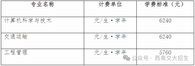第二学士学位实行学年制收费,各专业学费标准如下: