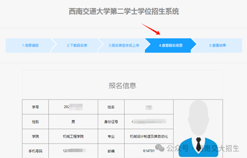 7.查看报名信息:点击“查看报名信息”,可以查看报名信息,在报名时间截止之前可以重新填报。