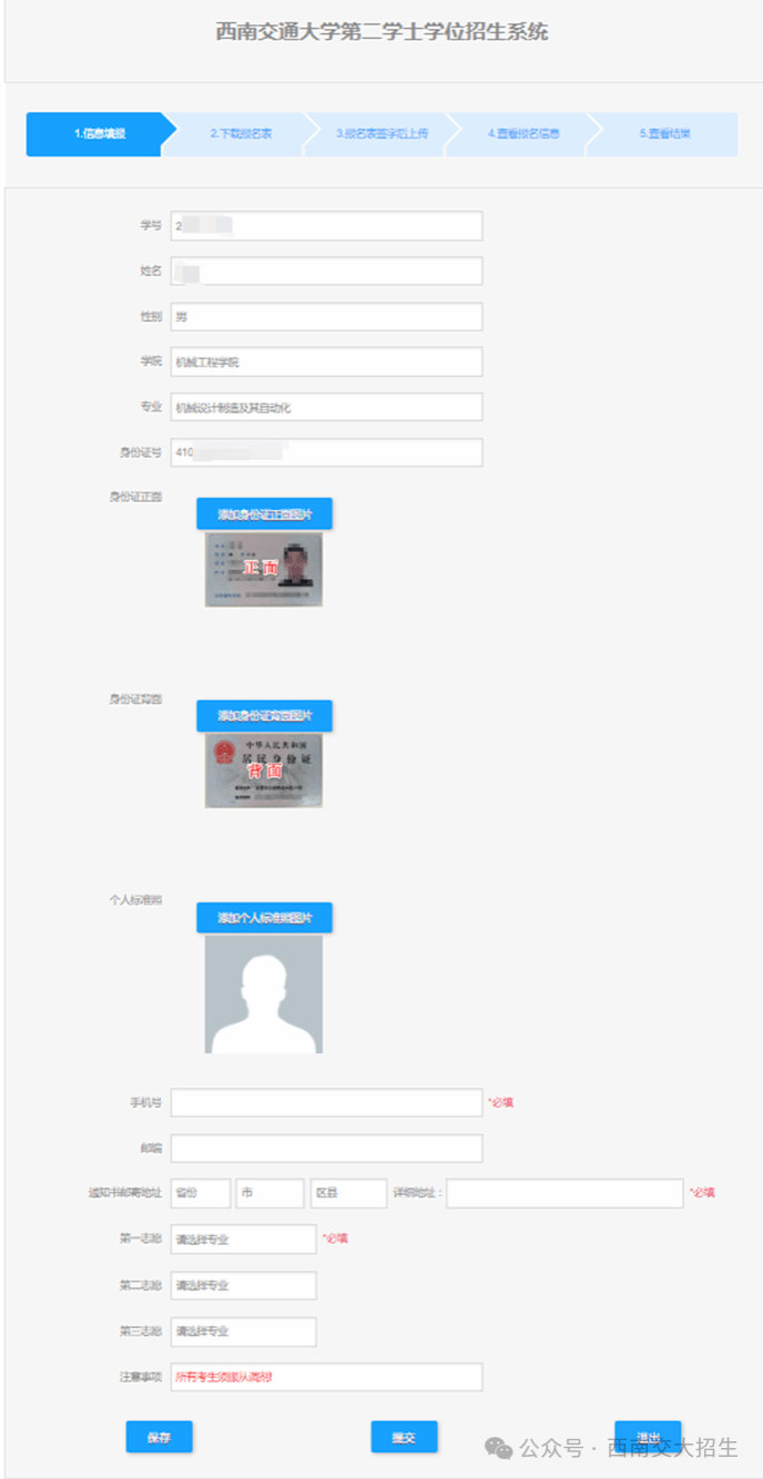 4.信息填报:其中带*的为必填项,请确保所有填报信息准确无误,上传照片清晰。信息填报完成后,点击“提交”,跳转到“下载报名表”。