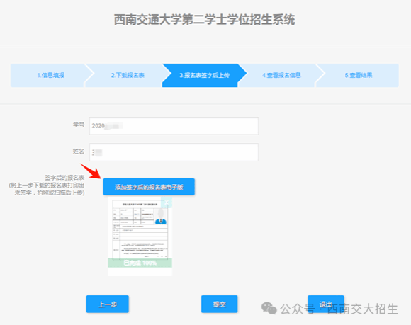 2024年第二学士学位报名表》,在承诺人处签字。最后点击“下一步”,进入报名表上传页面。