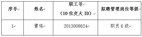 【公示】捷克论坛 管理岗位等级晋升评议结果公示