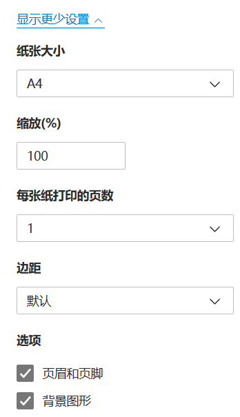 如果出现空白页情况,需要在打印的更多设置中勾选背景图形。